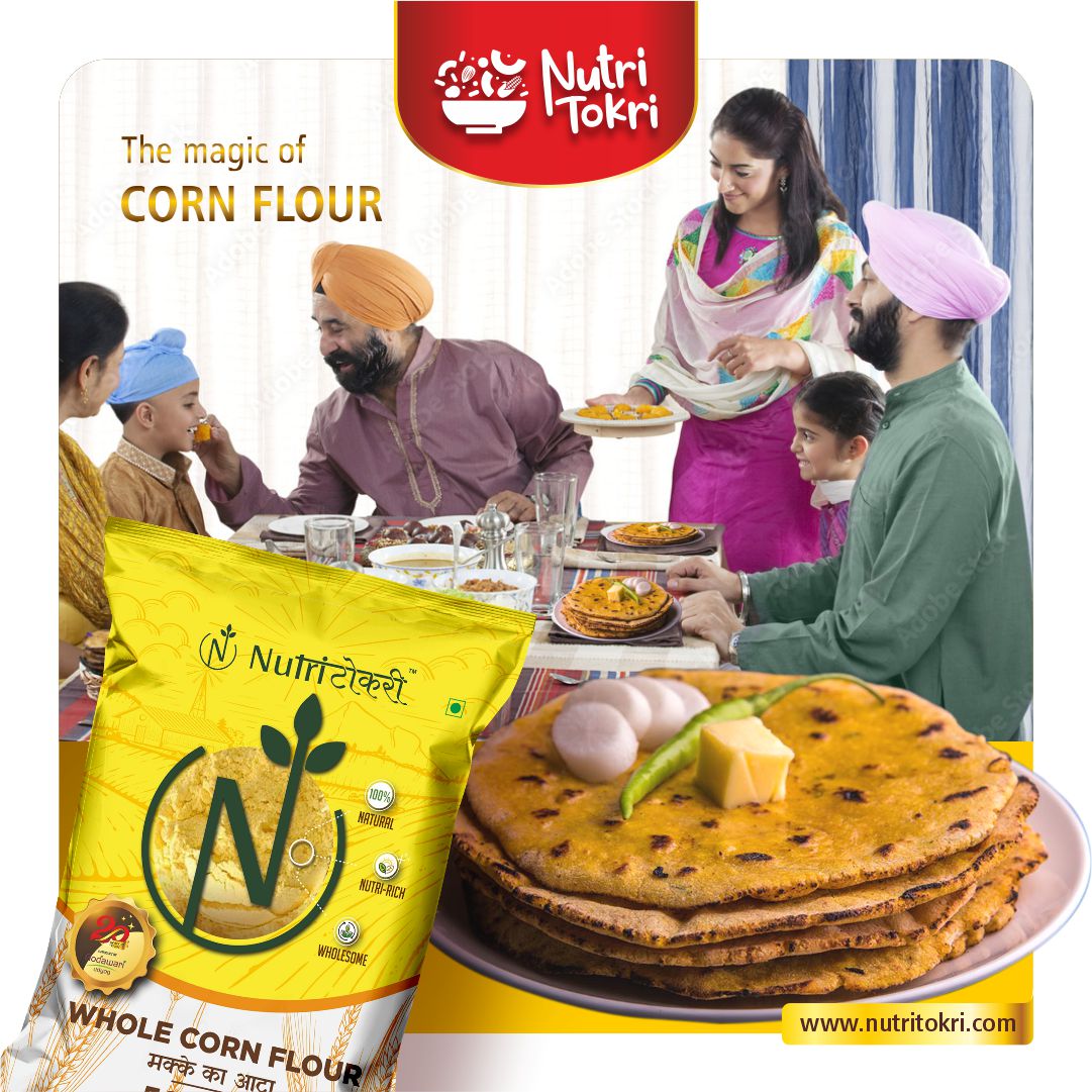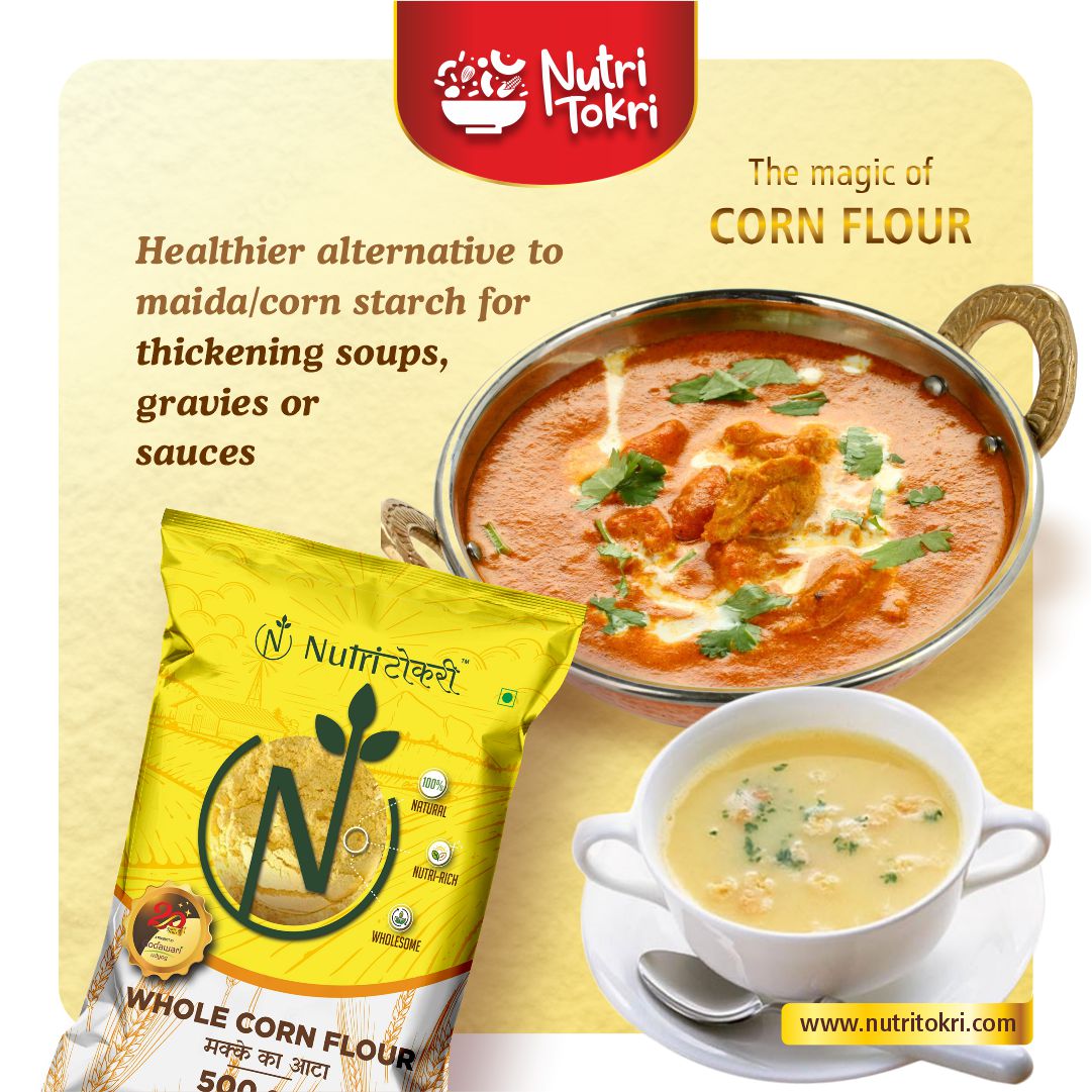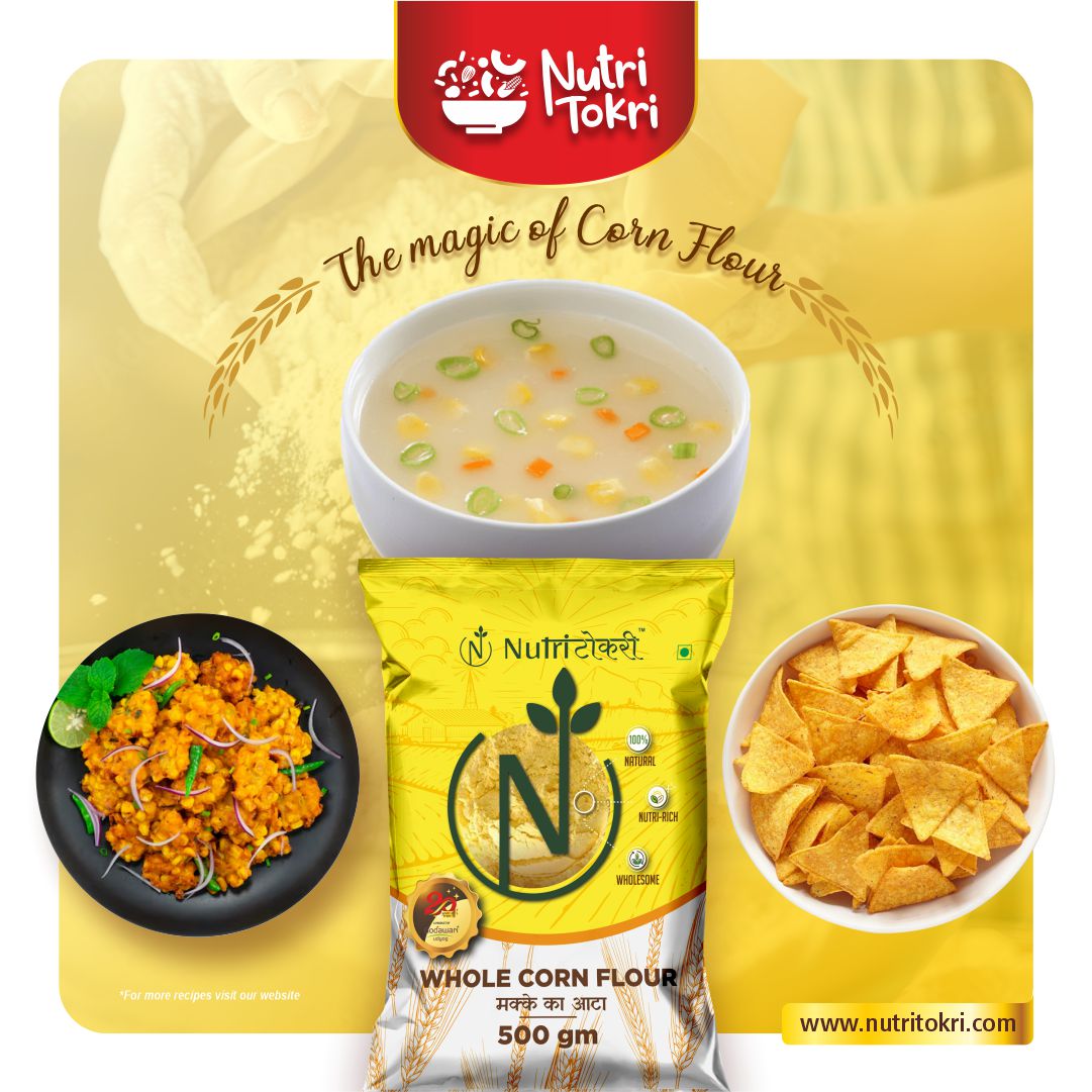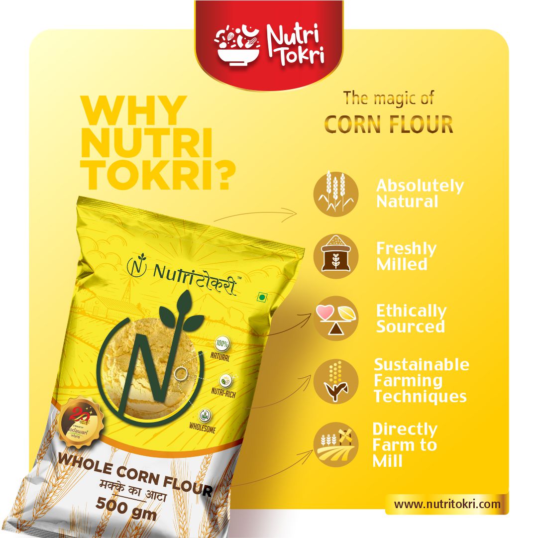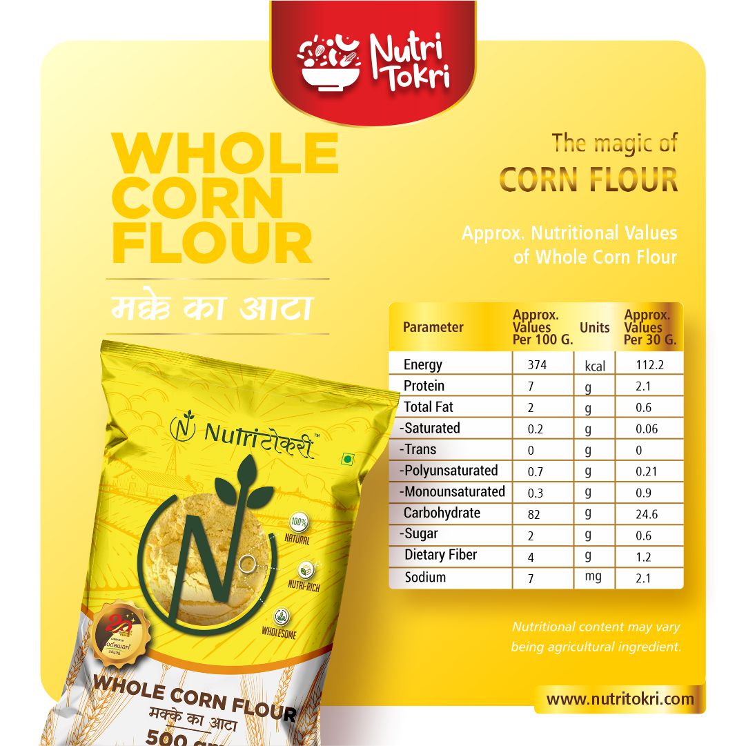 Experience the authentic purity and natural goodness of our Whole Yellow Corn Flour, made from high-quality whole corn and freshly milled in small batches using Swiss technology to preserve maximum freshness, flavour, and nutrition. This 100% natural flour is rich in essential nutrients, antioxidants, and minerals, making it a healthy addition to your daily meals. Naturally gluten-free, it is gentle on the stomach and ideal for individuals seeking clean, wholesome, and healthier grain alternatives. Packed with dietary fiber, this flour supports smooth digestion, reduces bloating, improves gut health, and helps maintain natural energy levels throughout the day. With its nutrient-dense profile—featuring vitamins, minerals, and antioxidants—it contributes to stronger immunity, improved metabolism, and overall wellness. Whether used for rotis, baking, thickening, or traditional recipes, this finely milled Swiss-technology corn flour ensures great texture, authentic taste, and consistent results in every preparation.