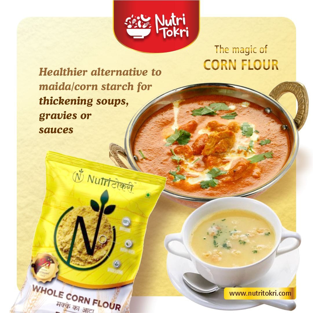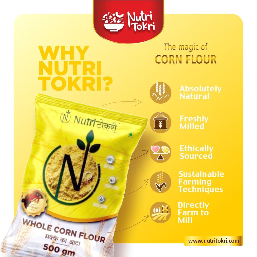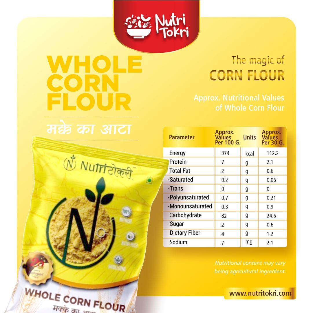Experience the authentic purity and natural goodness of our Whole Yellow Corn Flour, made from high-quality whole corn and freshly milled in small batches using Swiss technology to preserve maximum freshness, flavour, and nutrition. This 100% natural flour is rich in essential nutrients, antioxidants, and minerals, making it a healthy addition to your daily meals. Naturally gluten-free, it is gentle on the stomach and ideal for individuals seeking clean, wholesome, and healthier grain alternatives. Packed with dietary fiber, this flour supports smooth digestion, reduces bloating, improves gut health, and helps maintain natural energy levels throughout the day. With its nutrient-dense profile—featuring vitamins, minerals, and antioxidants—it contributes to stronger immunity, improved metabolism, and overall wellness. Whether used for rotis, baking, thickening, or traditional recipes, this finely milled Swiss-technology corn flour ensures great texture, authentic taste, and consistent results in every preparation.